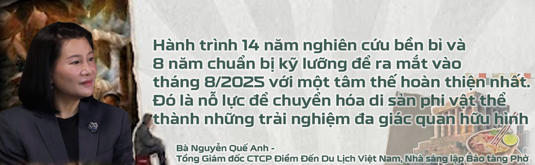 Đằng sau sự ra đời của Bảo tàng Phở là thành quả của 14 năm nghiên cứu bền bỉ và 8 năm chuẩn bị kỹ lưỡng. Dự kiến ra mắt chính thức vào tháng 8/2025 với tâm thế hoàn thiện nhất, dự án là nỗ lực tâm huyết trong việc chuyển hóa các giá trị di sản văn hóa phi vật thể thành những trải nghiệm đa giác quan hữu hình và sống động.