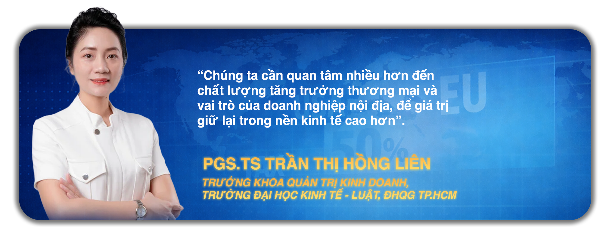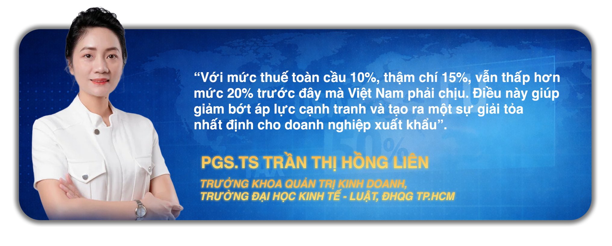 Theo bà Liên, khi mức thuế được áp dụng chung cho tất cả các quốc gia, Việt Nam không còn chịu bất lợi tương đối so với các nước trong khu vực. Doanh nghiệp có thể quay lại cạnh tranh bằng năng lực cốt lõi như kiểm soát chi phí, chất lượng sản phẩm.