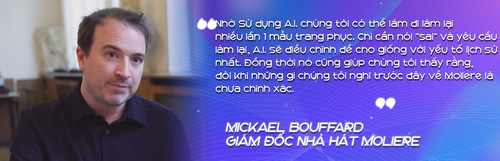 Dù rủi ro lớn, A.I. vẫn đang tạo ra rất nhiều thành quả không thể phủ nhận. Tại Pháp, công nghệ trí tuệ nhân tạo được sử dụng để phục dựng lại các chi tiết trang phục và bối cảnh sân khấu của Molière - biểu tượng văn hóa thế kỷ XVII.