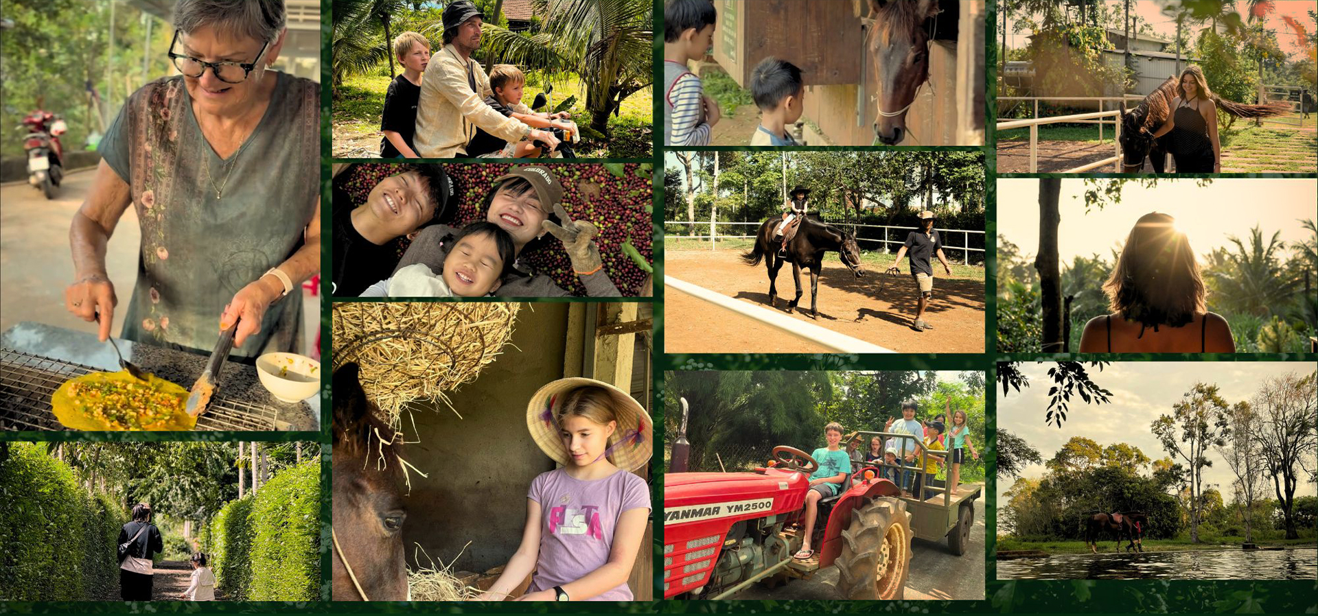 Sinh động bởi của các hoạt động trải nghiệm đồng quê: cho ngựa ăn cỏ, chơi cùng chó, thỏ, đi bắt cá, bắt châu chấu, cào cào; rộn ràng từ hoạt động thăm thú chợ địa phương, đạp xe tham quan làng, nghe kể câu chuyện về lịch sử ra đời của làng; tham gia mùa vụ khi cùng hái cà phê, hái tiêu…