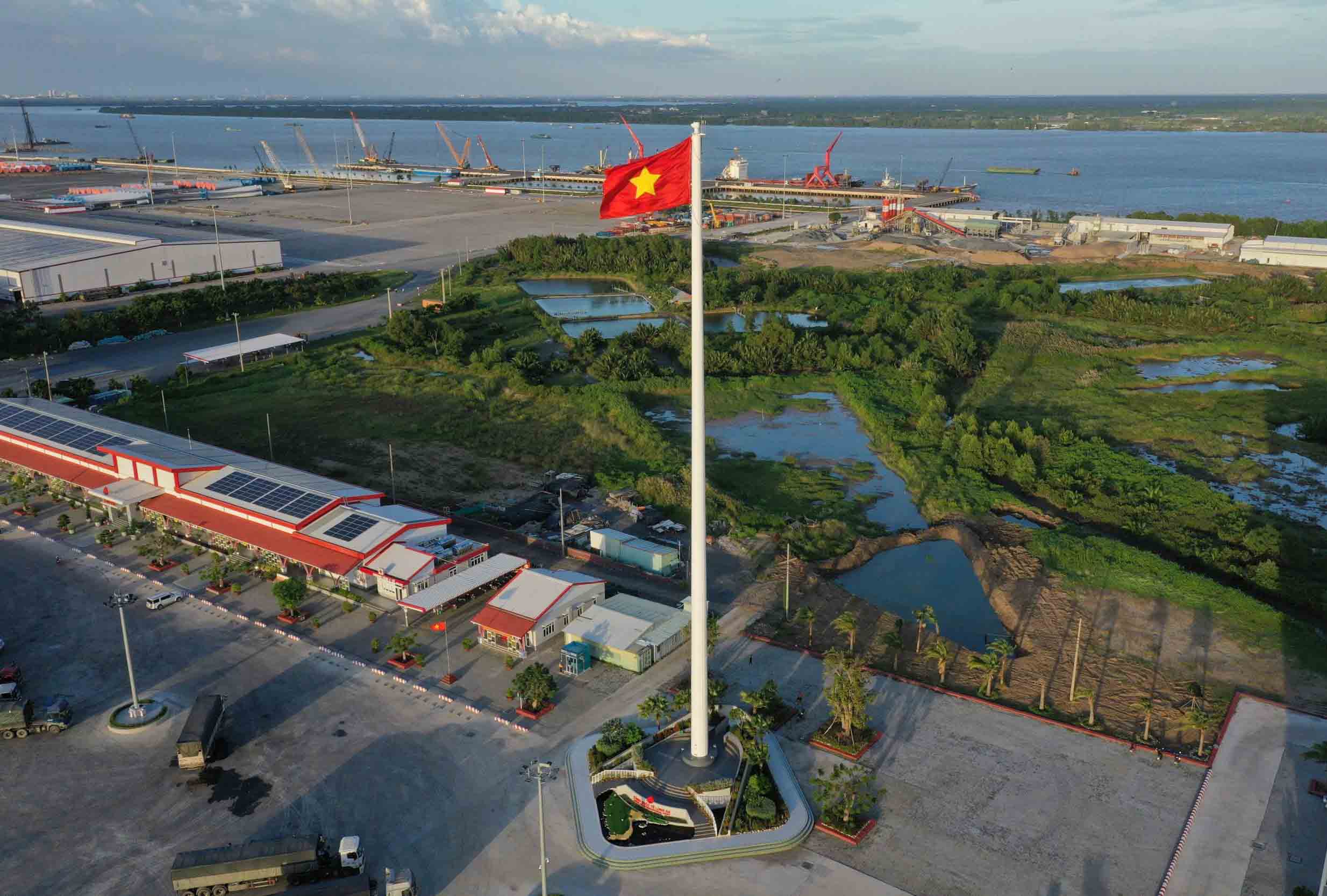 Toàn cảnh cột cờ cao nhất Việt Nam tại Cảng quốc tế Long An