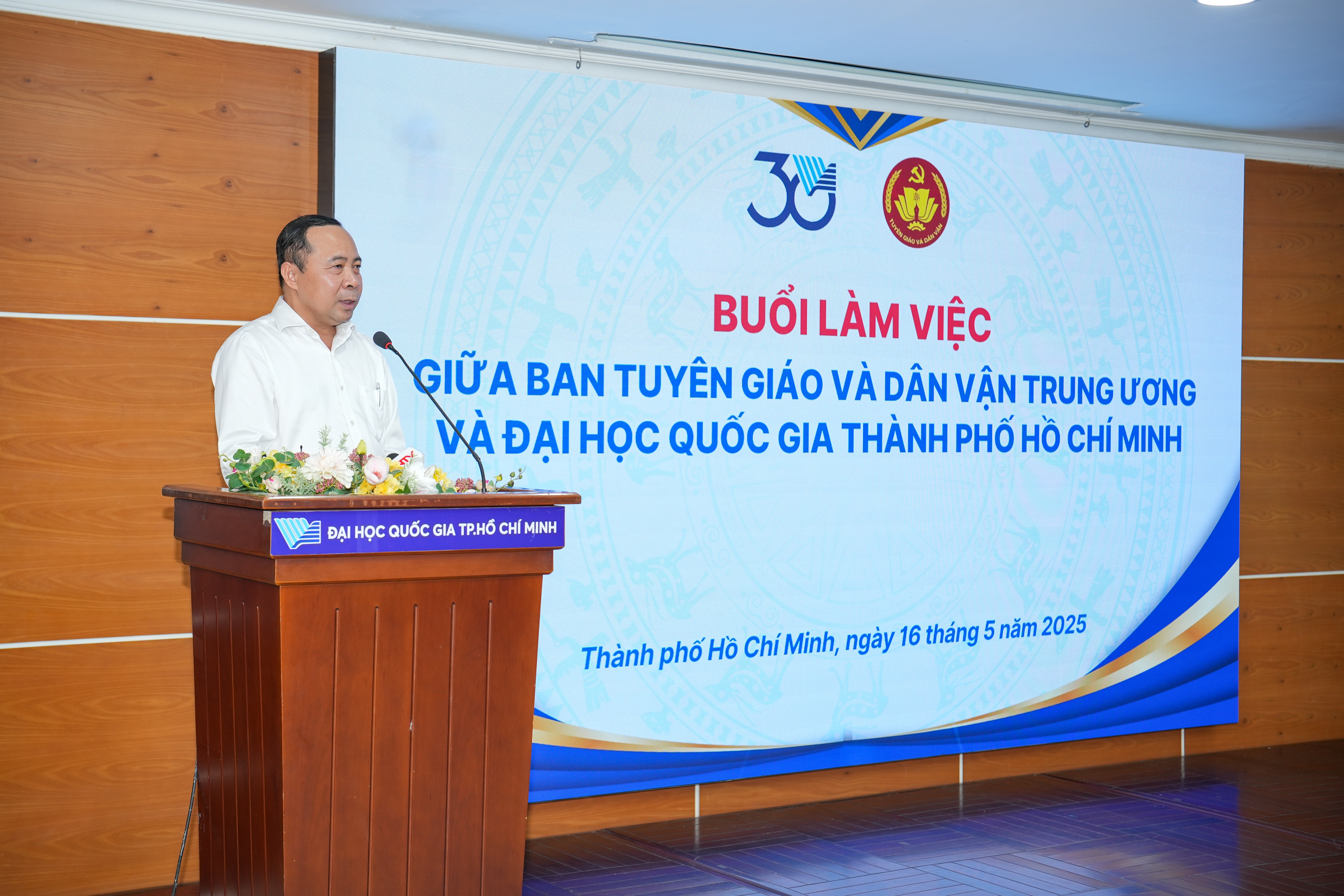 Ban Tuyên giáo và Dân vận Trung ương làm việc với Đại học Quốc gia TP.HCM về việc triển khai Nghị quyết số 57 của Bộ Chính trị về phát triển khoa học, công nghệ, đổi mới sáng tạo và chuyển đổi số quốc gia