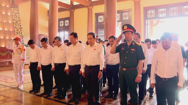 Đoàn thành tâm dâng lên vòng hoa tươi thắm và những nén hương thơm, kính cẩn nghiêng mình tỏ lòng biết ơn vô hạn đối với đồng bào, cán bộ, chiến sĩ đã chiến đấu, hy sinh anh dũng vì sự nghiệp giải phóng dân tộc, xây dựng và bảo vệ Tổ quốc