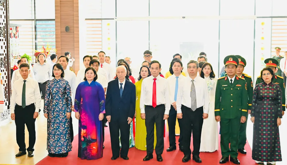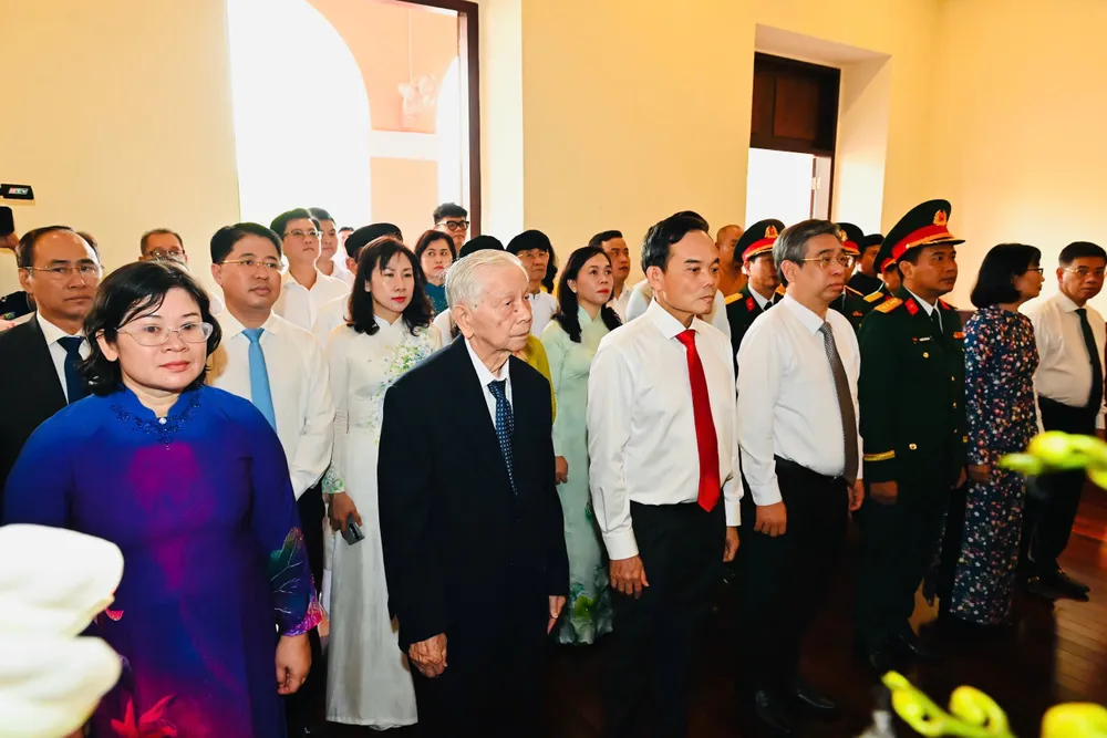 Tại Bảo tàng Hồ Chí Minh - Chi nhánh TP.HCM, đoàn đại biểu dành phút mặc niệm, thành kính dâng hoa, dâng hương lên a nh linh Chủ tịch Hồ Chí Minh - Anh hùng giải phóng dân tộc, lãnh tụ thiên tài của Đảng và nhân dân, nhà văn hóa kiệt xuất của đất nước.
