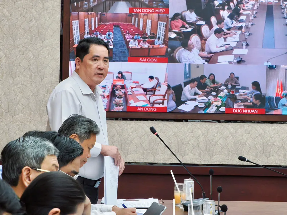 Phó Bí thư Thành ủy TP.HCM Nguyễn Phước Lộc thống nhất với ý kiến của các sở, ngành về việc triển khai công tác tổ chức bầu cử đúng quy định, hiệu quả, tuyệt đối không để xảy ra sai sót.