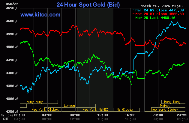Tính đến 10 giờ ngày 27/3 (giờ Việt Nam), giá vàng thế giới giảm 71,9 USD/ounce so kết phiên hôm trước xuống mức 4.433,4 USD/ounce.