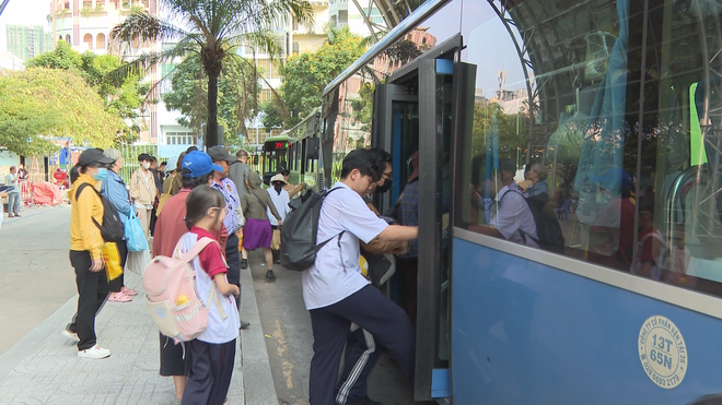 Không chỉ Metro, hệ thống xe buýt tại TP. Hồ Chí Minh cũng ghi nhận lượng hành khách tăng đáng kể. Nhiều tuyến trong giờ cao điểm thường xuyên kín chỗ.