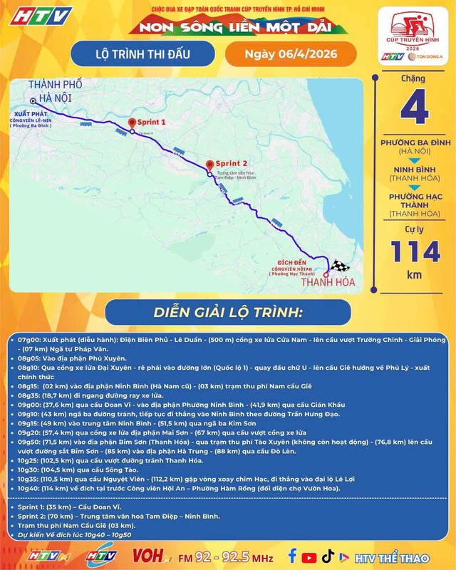 Giới thiệu lộ trình Chặng 4 - Cúp Truyền hình TP. Hồ Chí Minh 2026: TP. Hà Nội - TP. Thanh Hoá