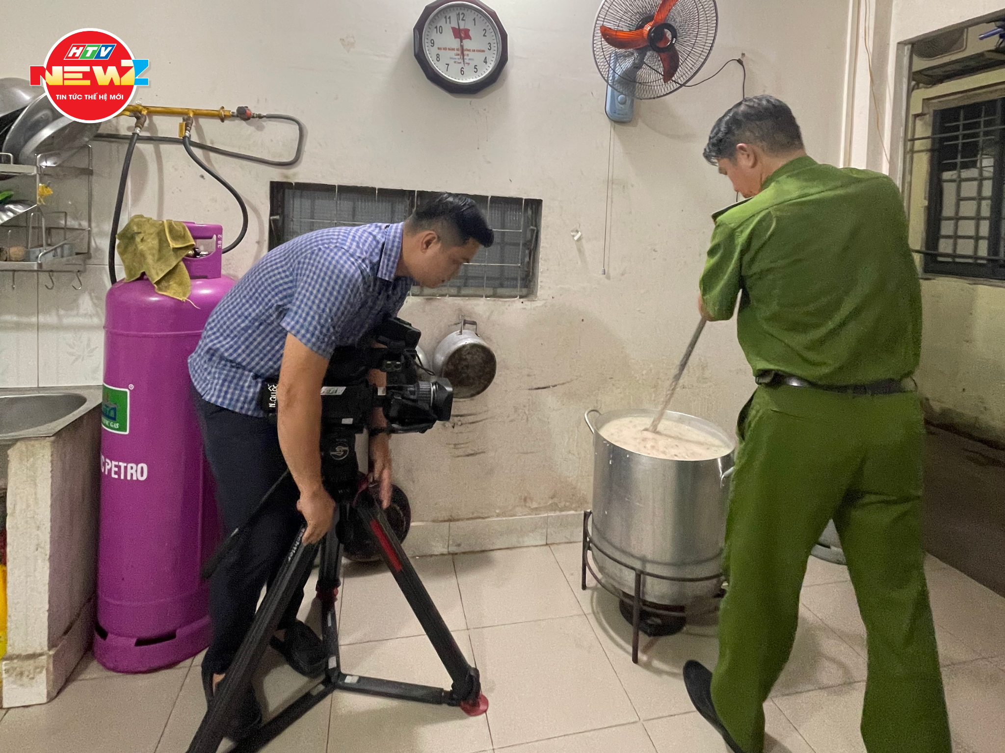 Những cán bộ công an chăm chút, tỉ mỉ trong từng bát cháo cho người dân