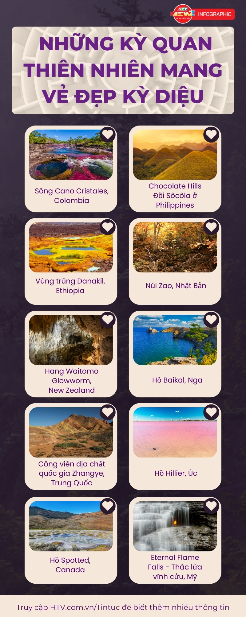 10 trong số hàng ngàn kỳ quan thiên nhiên tráng lệ, ngoạn mục và độc đáo trên Trái Đất này không chỉ khiến chúng ta cảm nhận được sự kỳ diệu, vẻ đẹp của thiên nhiên mà còn khiến chúng ta thêm trân trọng và trân trọng môi trường sinh thái trên Trái Đất.