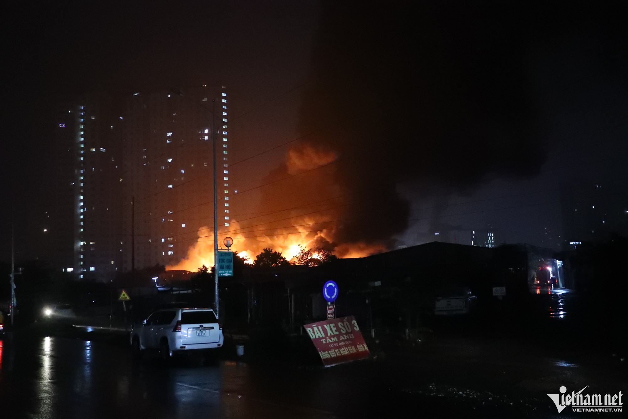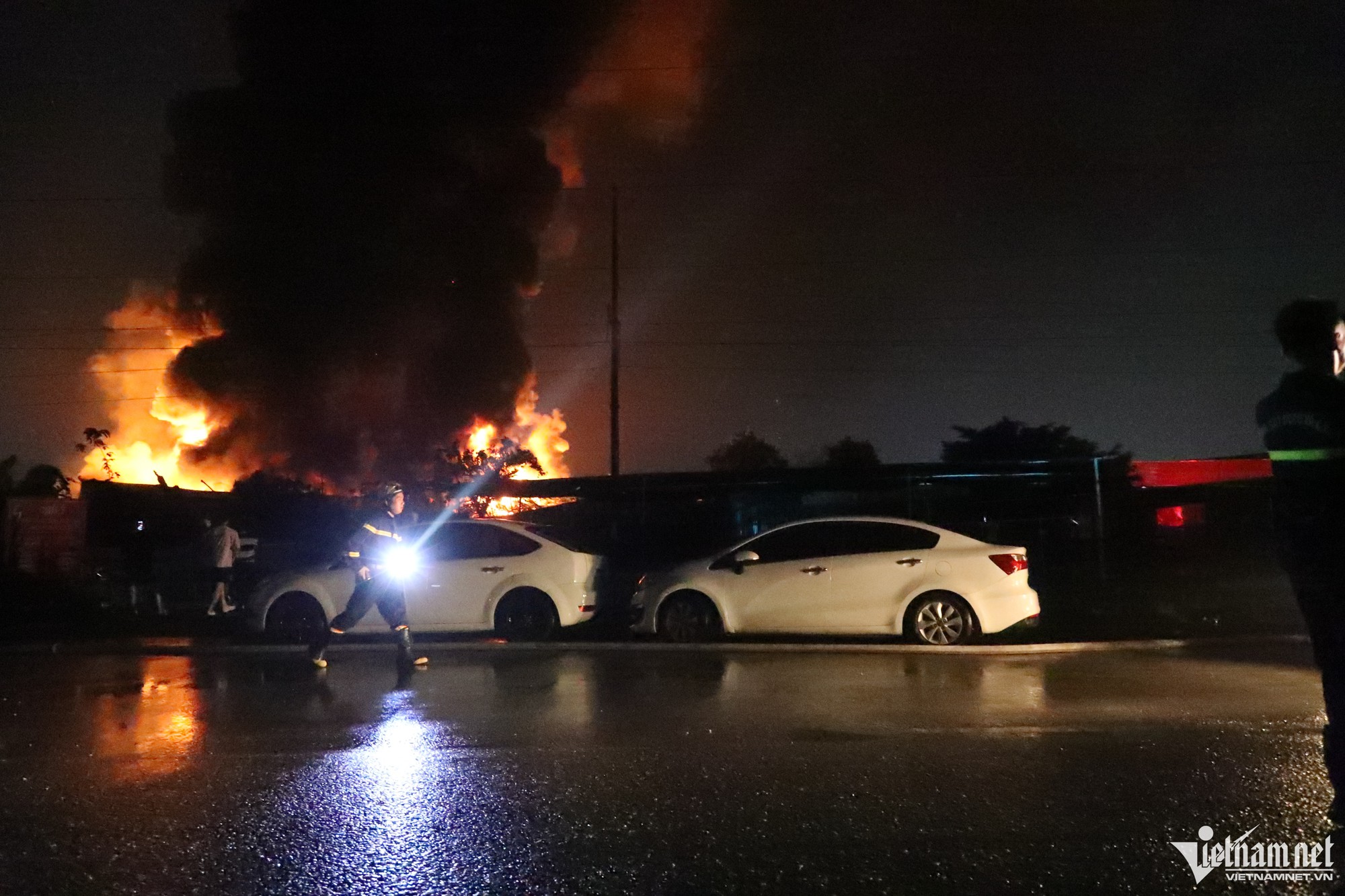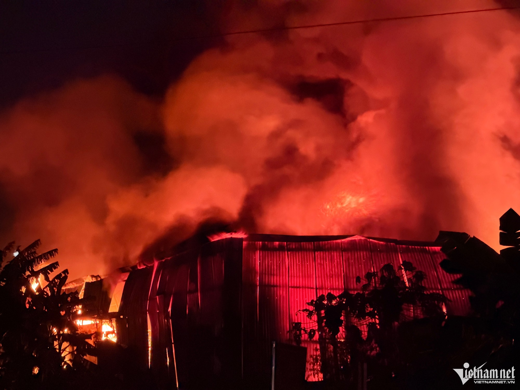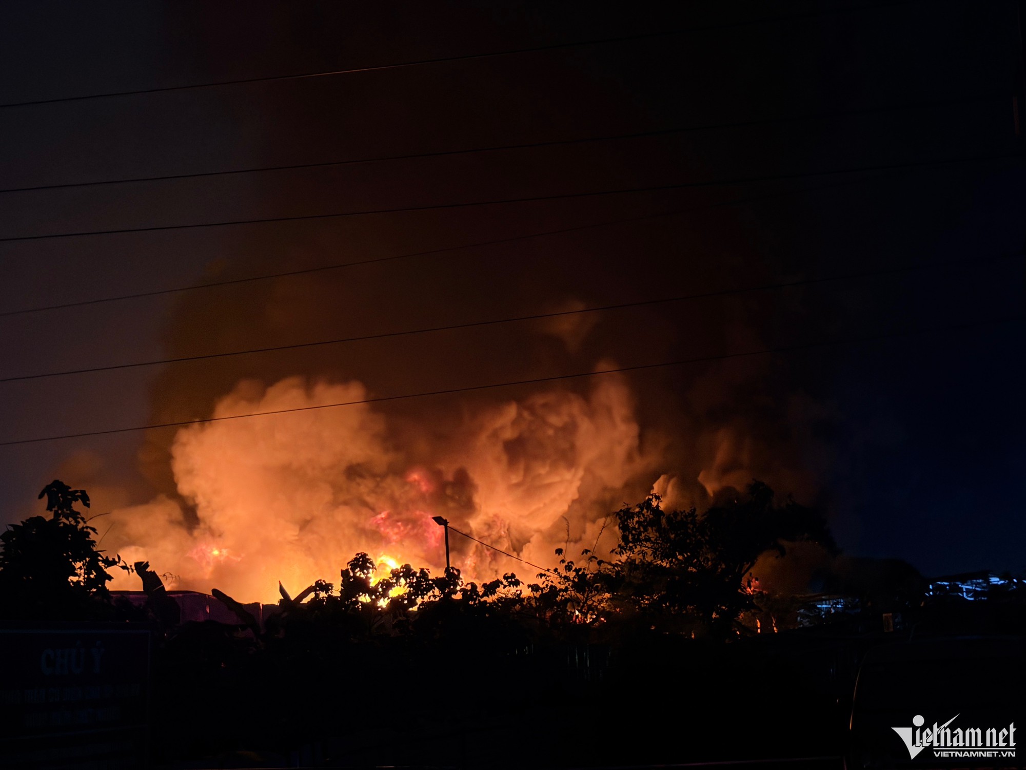 Tại hiện trường, ngọn lửa bốc cao hàng chục mét, khói đen cuồn cuộn bao trùm khu vực.