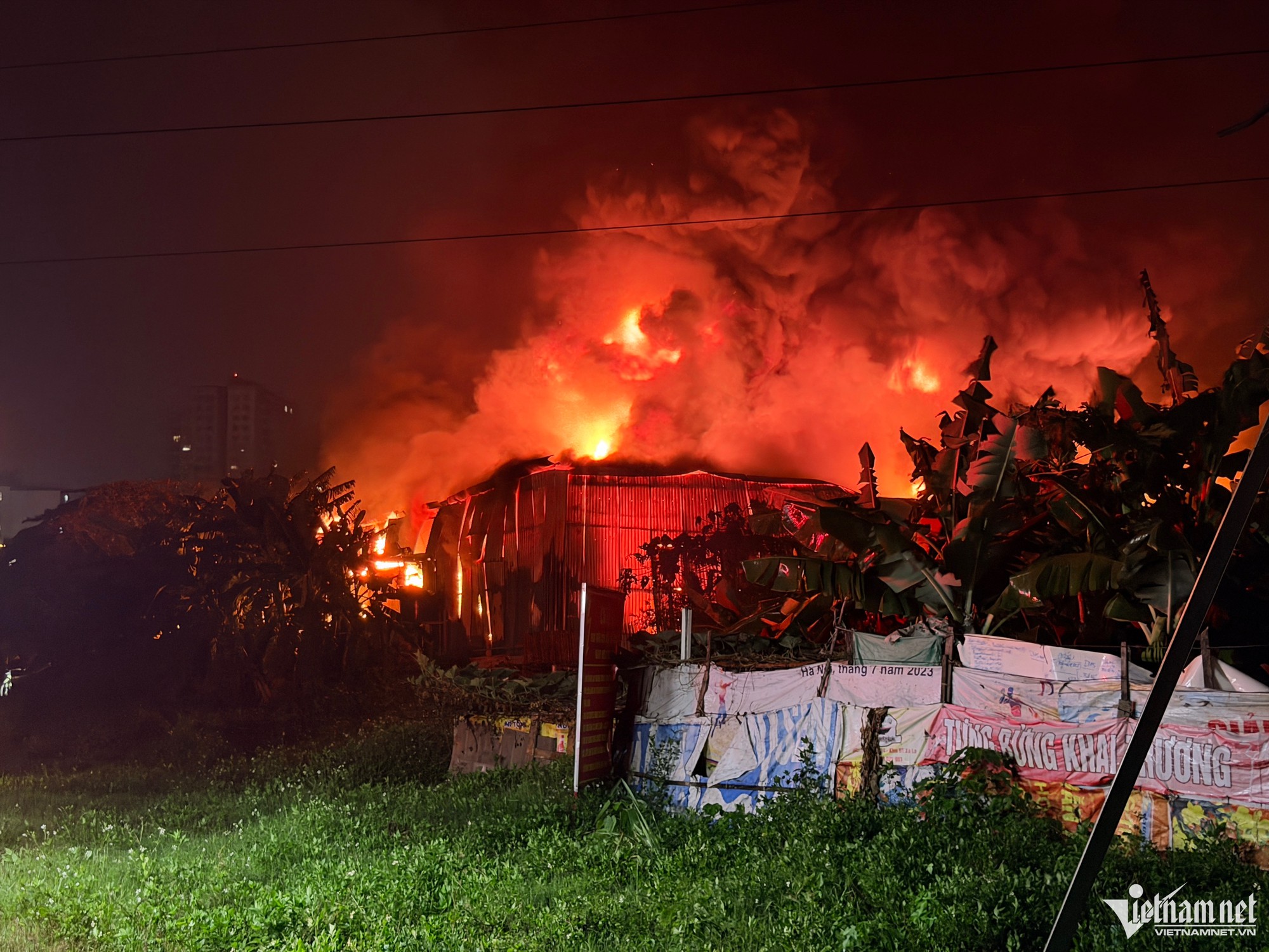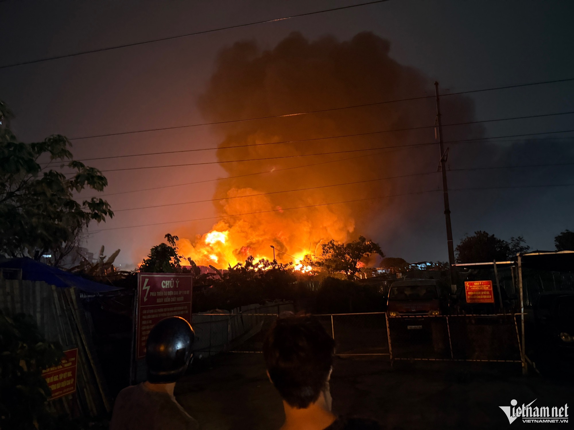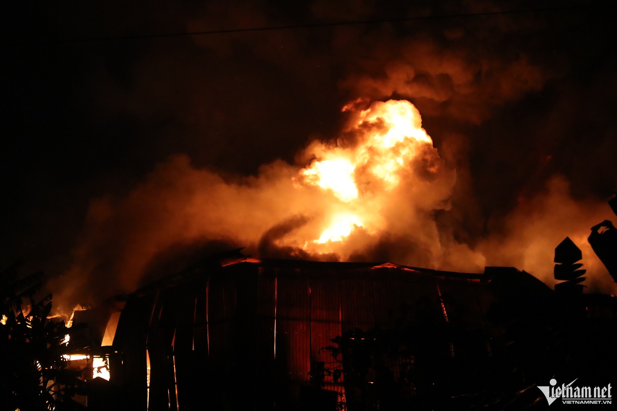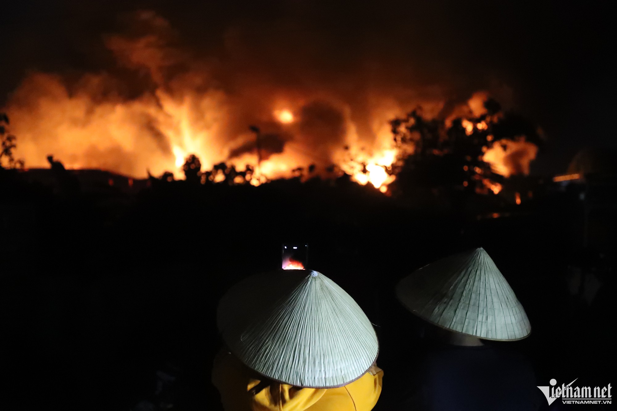 Tại hiện trường, ngọn lửa bốc cao hàng chục mét, khói đen cuồn cuộn bao trùm khu vực.
