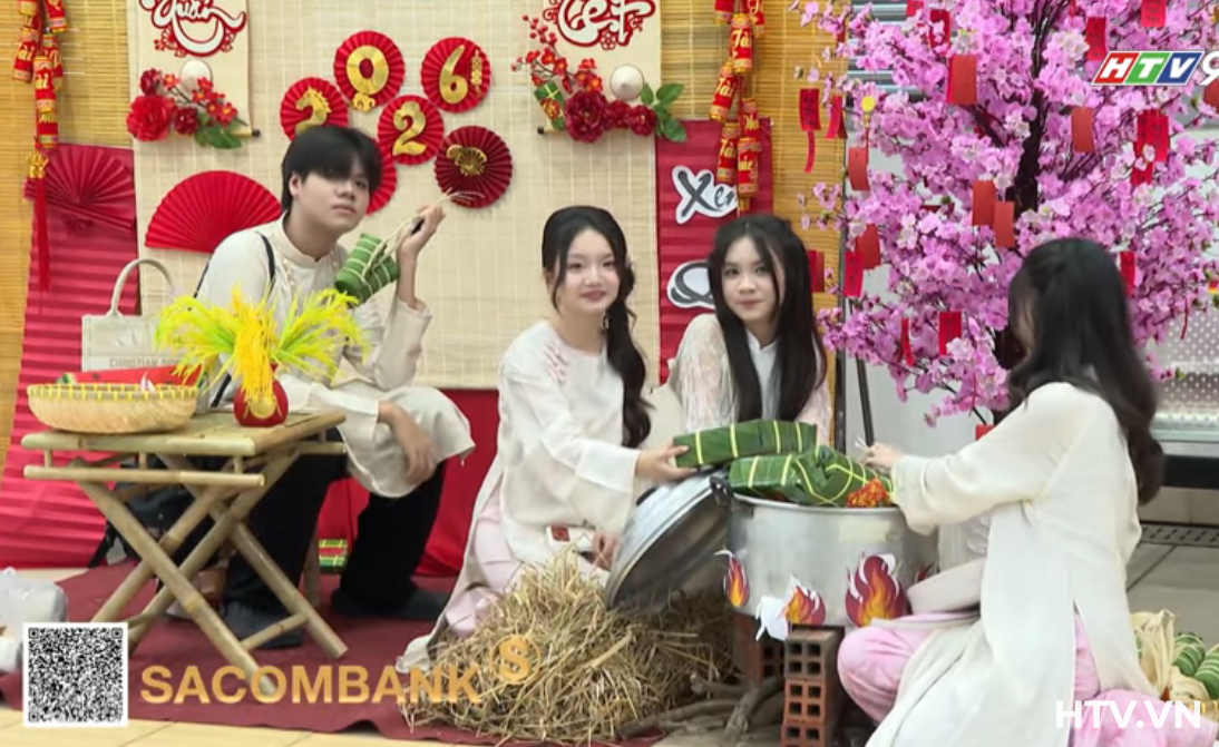 Giữa không gian kiến trúc hiện đại, những cành mai vàng, đào hồng, bánh chưng xanh, câu đối đỏ… được bài trí tinh tế. Sự kết hợp ấy tạo nên một bức tranh giao hòa giữa truyền thống và hiện đại, khiến nhiều người không khỏi bất ngờ.