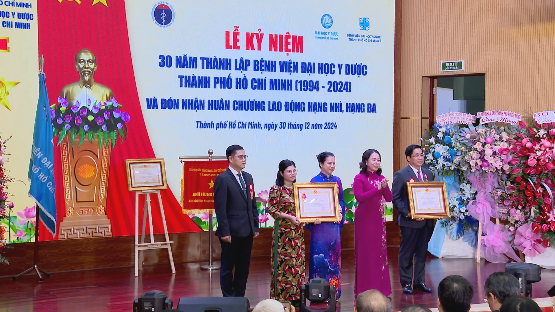 Trong không khí trang trọng, Phó chủ tịch nước Võ Thị Ánh Xuân đã thay mặt lãnh đạo Đảng, Nhà nước trao danh hiệu Anh hùng Lao động cho Bệnh viện Đại học Y Dược TP.HCM vì những thành tích xuất sắc trong lao động, sáng tạo.