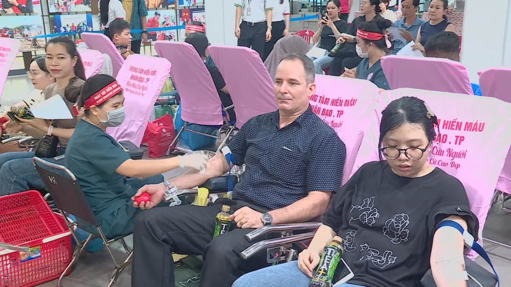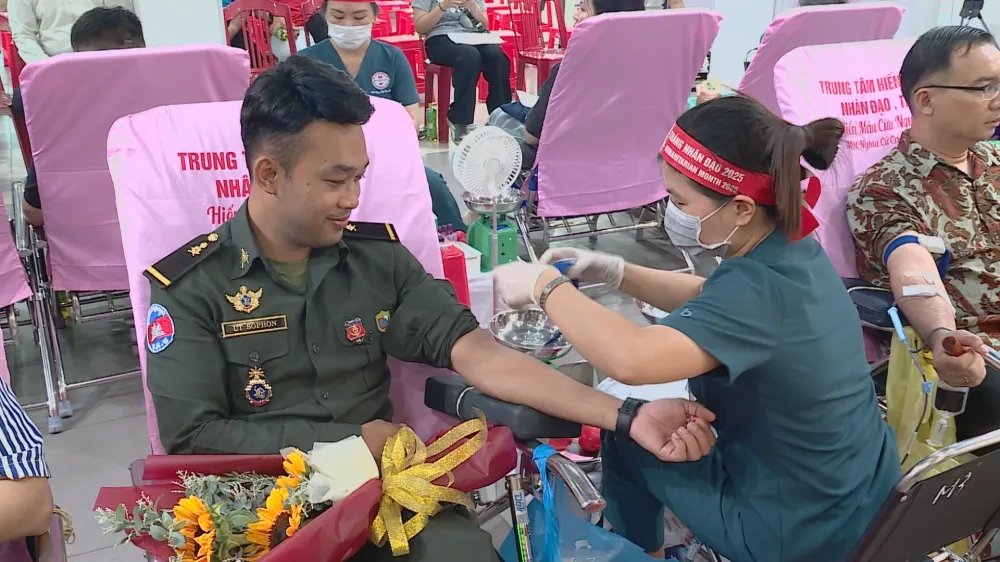 Tháng Nhân đạo năm nay còn chứng kiến một nét đẹp đặc biệt: sự tham gia của những người bạn quốc tế đang sinh sống và học tập tại Việt Nam. Những giọt máu tình nguyện không biên giới, những tấm lòng không phân biệt quốc tịch đã làm nên ý nghĩa nhân văn sâu sắc. Anh Sarith Thanarath, du học sinh Campuchia tại Việt Nam, lần đầu tiên hiến máu tại đây và cảm thấy tự hào: "Em chưa từng hiến máu trước đây, đến Việt Nam là lần đầu tiên và em tự hào khi mình có thể góp sức để giúp đỡ mọi người. Nếu có cơ hội, em sẽ tiếp tục tham gia." Cùng chung suy nghĩ, học viên Ut Sophon từ Trường Sĩ quan Công binh Tỉnh Bình Dương coi đây là hoạt động ý nghĩa, góp phần tăng thêm tình cảm hữu nghị giữa Việt Nam và Campuchia.