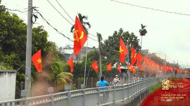 Tại các xã ngoại thành TP. Hồ Chí Minh, không khí Tết đang rộn ràng với sắc cờ đỏ rực và sắc vàng rực rỡ của làng mai Bình Lợi
