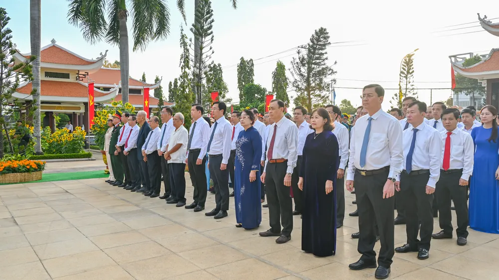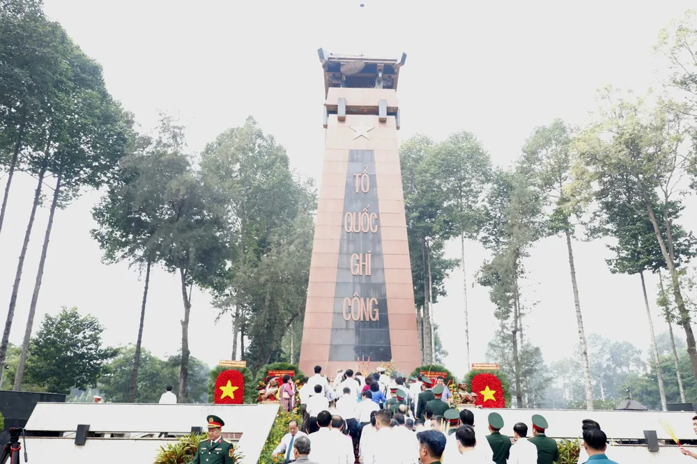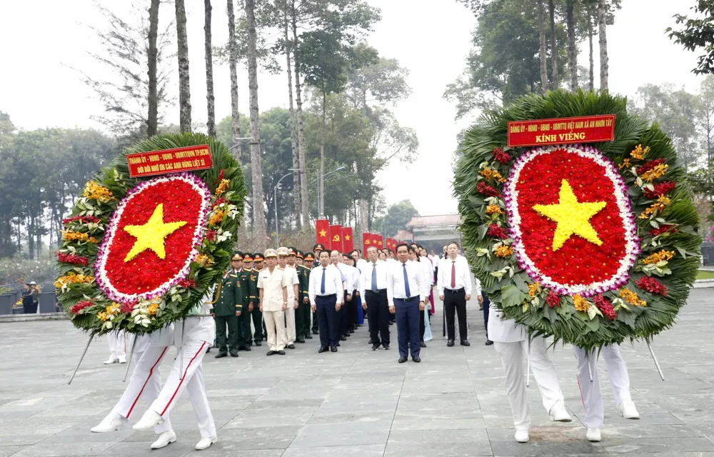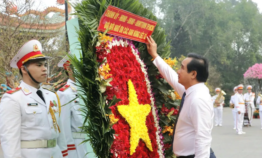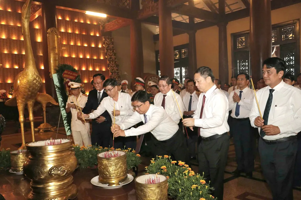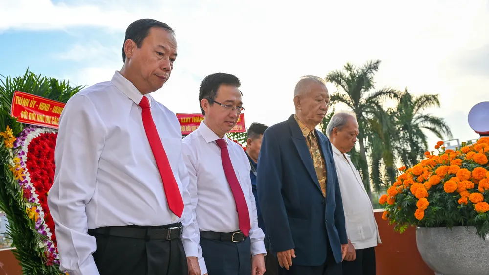 Tại Đài tưởng niệm, các đại biểu đã đặt vòng hoa, dành phút mặc niệm và dâng hương tưởng nhớ, bày tỏ lòng biết ơn sâu sắc đối với những người con ưu tú của dân tộc đã không tiếc máu xương, dũng cảm chiến đấu, hy sinh quên mình vì sự nghiệp đấu tranh giải phóng dân tộc, vì độc lập, tự do của Tổ quốc, vì hạnh phúc của nhân dân.