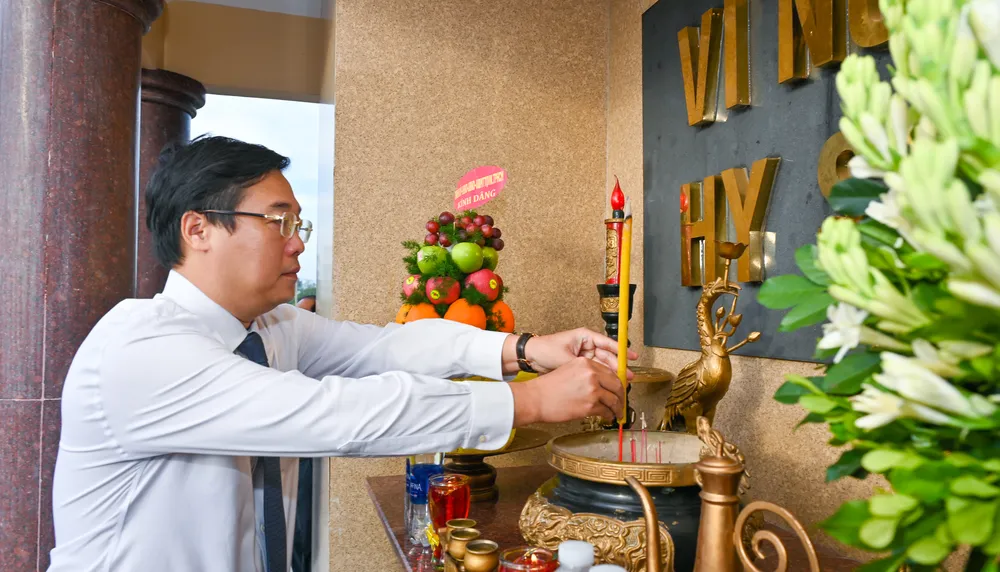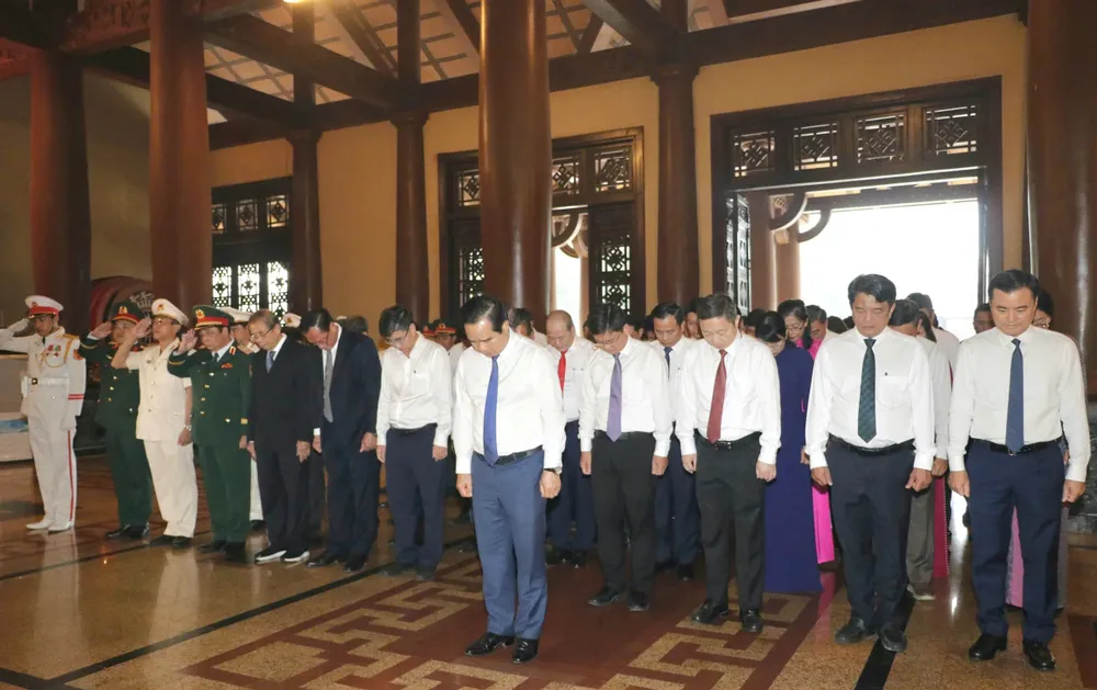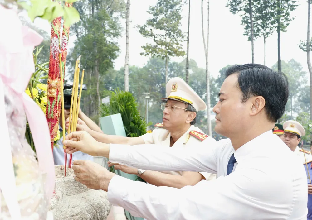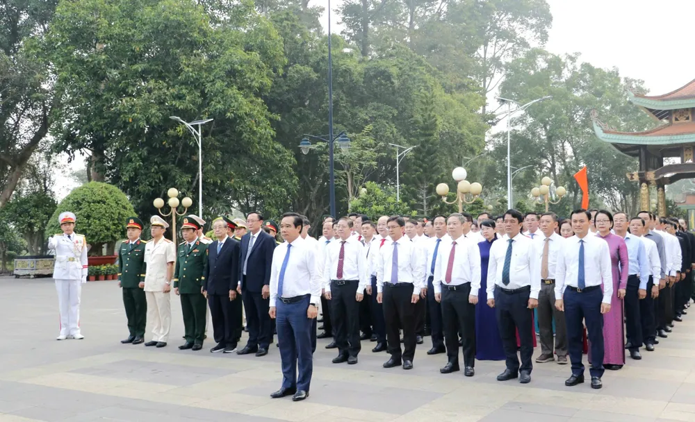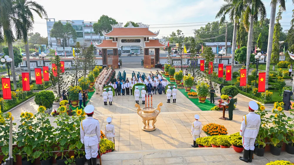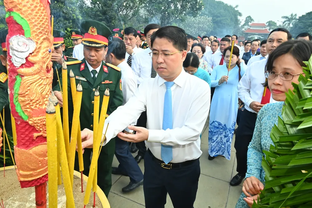 Tại Đài tưởng niệm, các đại biểu đã đặt vòng hoa, dành phút mặc niệm và dâng hương tưởng nhớ, bày tỏ lòng biết ơn sâu sắc đối với những người con ưu tú của dân tộc đã không tiếc máu xương, dũng cảm chiến đấu, hy sinh quên mình vì sự nghiệp đấu tranh giải phóng dân tộc, vì độc lập, tự do của Tổ quốc, vì hạnh phúc của nhân dân.