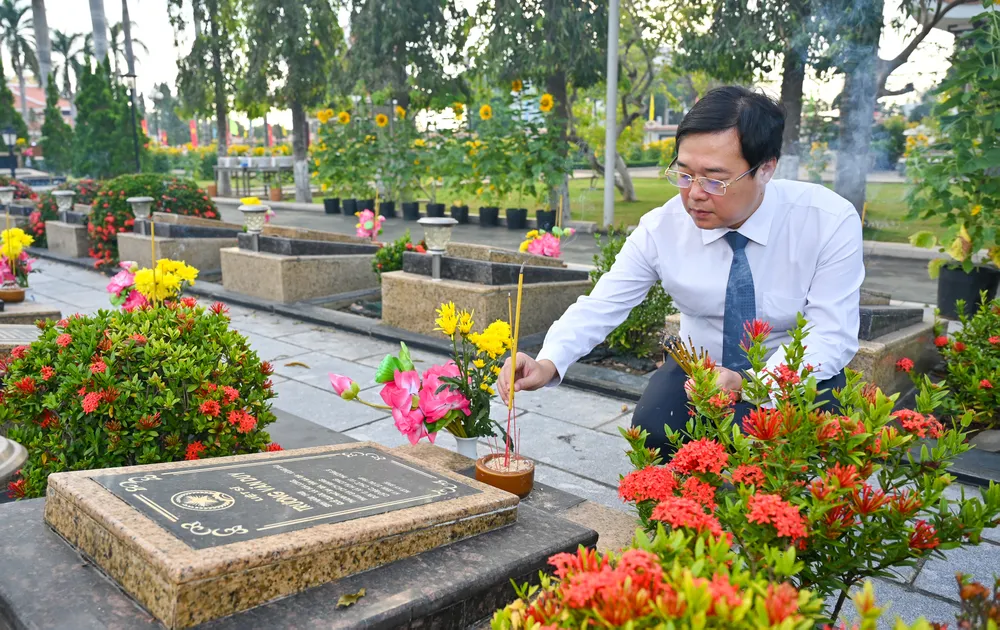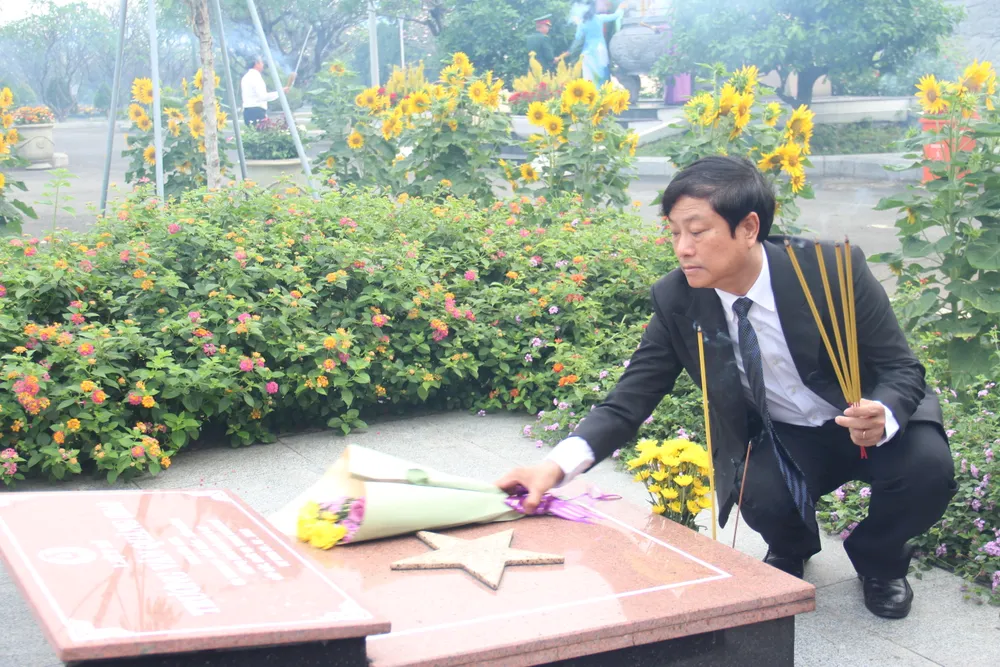 Sau lễ dâng hoa, dâng hương, các đại biểu đã đến phần mộ thắp hương để tưởng nhớ và tri ân các Anh hùng liệt sĩ.