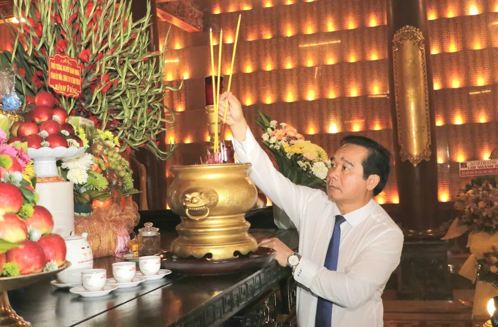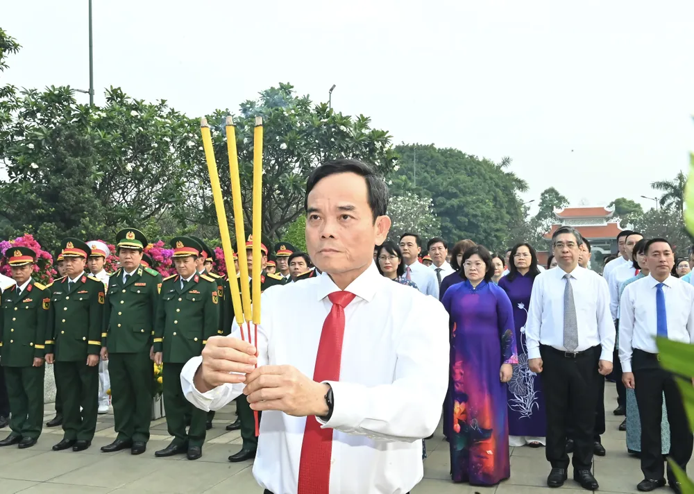 Tại đây, đoàn đại biểu dành phút mặc niệm, dâng nén hương tưởng nhớ công ơn, tỏ lòng biết ơn vô hạn đối với các Mẹ Việt Nam anh hùng; các đồng chí lãnh đạo Đảng, Nhà nước, MTTQ Việt Nam; các đồng chí lão thành cách mạng; các tướng lĩnh, cán bộ trong lực lượng vũ trang... đã cống hiến cả cuộc đời mình vì sự nghiệp giải phóng dân tộc, đã có công lao to lớn trong công cuộc xây dựng và bảo vệ Tổ quốc Việt Nam xã hội chủ nghĩa.