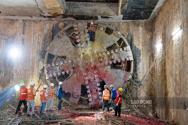 Ngày 13/4, máy đào hầm TBM số 2 mang tên “Táo Bạo” đã chính thức cán đích tại ga S12 - Ga Hà Nội