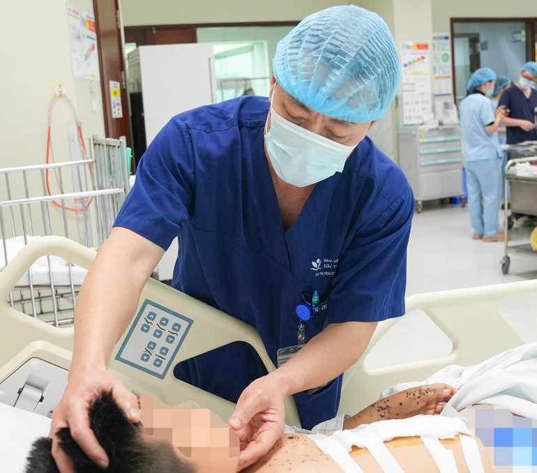 Hiện tại, sau 5 ngày điều trị tích cực, bệnh nhi đã tự thở, không cần hỗ trợ hô hấp; tình trạng bụng ổn định, bắt đầu được cho ăn trở lại; các ống dẫn lưu đã được rút. Hai mắt của bệnh nhi đã có thể nhận biết ánh sáng và hình ảnh, tuy thị lực còn giảm và cần tiếp tục theo dõi, phục hồi chức năng. Các tổn thương ở da đang dần liền sẹo.