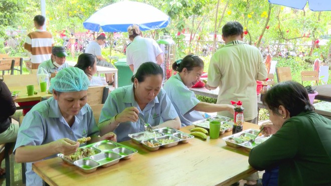 Để những phần cơm nóng hổi kịp đến tay người bệnh, bếp ăn phải "nổi lửa" từ 8 giờ 30 sáng và kết thúc vào 13 giờ chiều. Nói về ý nghĩa của công việc này, chị Trầm Thị Hồng Đang - Tình nguyện viên Nhà ăn hạnh phúc, bày tỏ: "Chia sẻ cho bà con mỗi phần ăn tuy chỉ từ 20 - 30 ngàn đồng nhưng rất là đáng quý. Chúng tôi mong muốn mô hình này sẽ được lan tỏa nhiều hơn để giúp đỡ những bà con khó khăn nhiều hơn nữa".