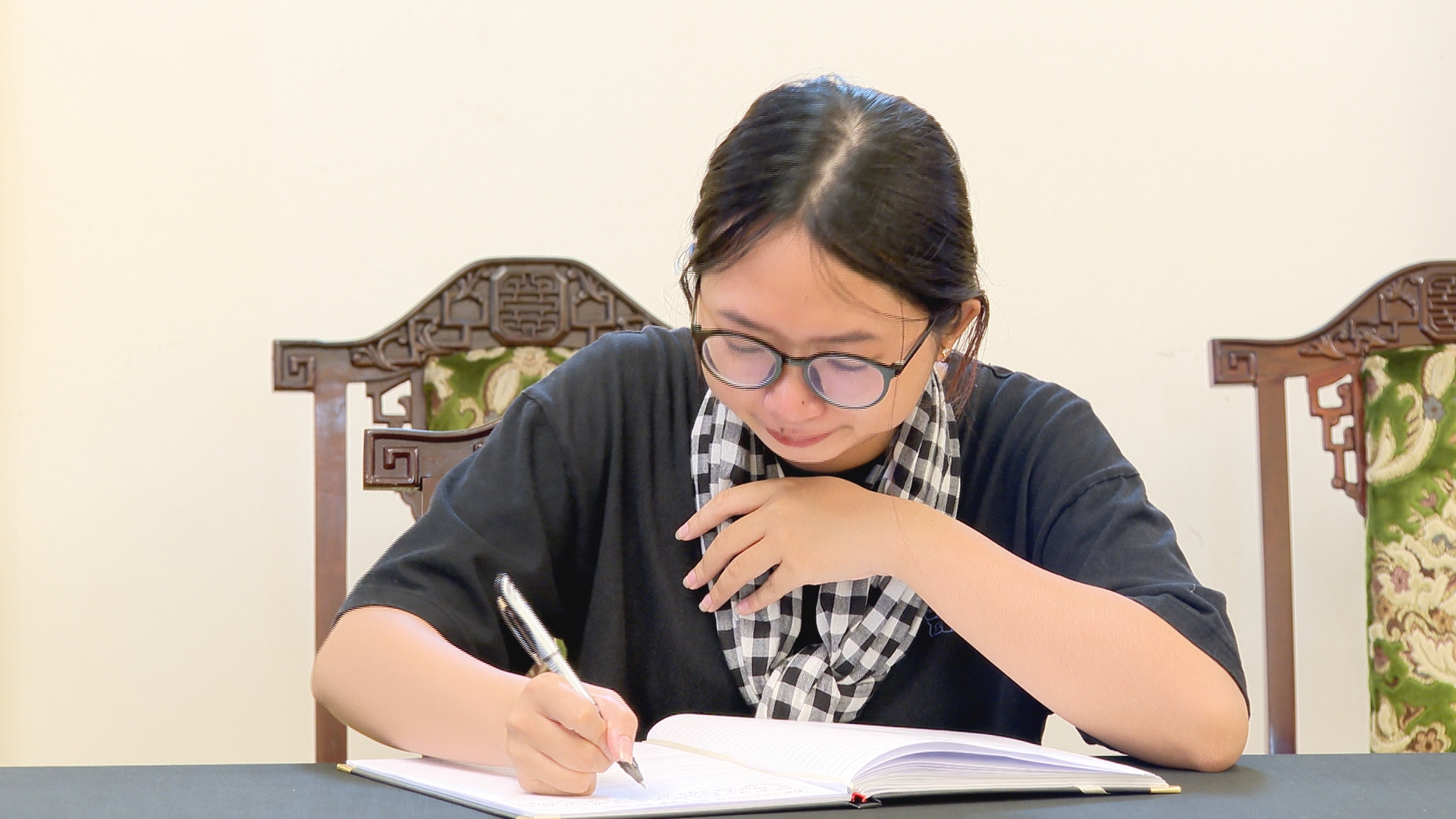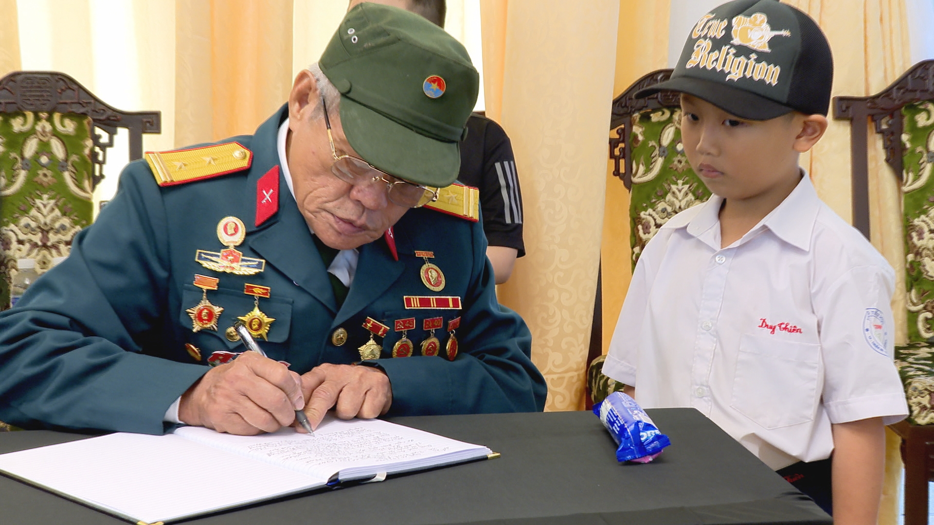 Nắn nót từng dòng chữ trong sổ tang, bạn Nguyễn Thị Thu Phương rơi nước mắt gửi đến Tổng bí thư Nguyễn Phú Trọng những tình cảm yêu mến: "Kính gửi Bác Nguyễn Phú Trọng, Cảm ơn Bác vì những cống hiến tận tụy của Bác dành cho nhân dân, cho đất nước. Mong Bác an nghỉ. Thế hệ chúng cháu sẽ cố gắng hết sức để gìn giữ và phát triển những di sản, thành tựu của thế hệ đi trước."