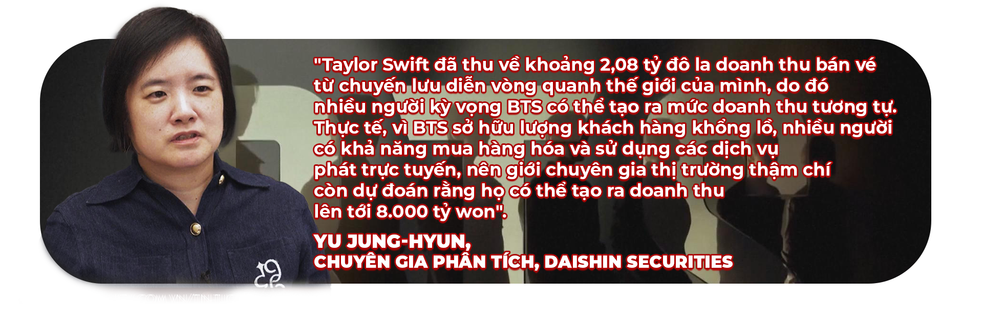 Con số 8.000 tỷ won này tương đương 5,32 tỷ đô la Mỹ, được nhắc đến như sức mạnh kinh tế to lớn mà cộng đồng fan tạo ra hoặc đóng góp cho Hàn Quốc, cũng như cho các thành phố sẽ tổ chức chuyến lưu diễn vòng quanh thế giới của BTS.