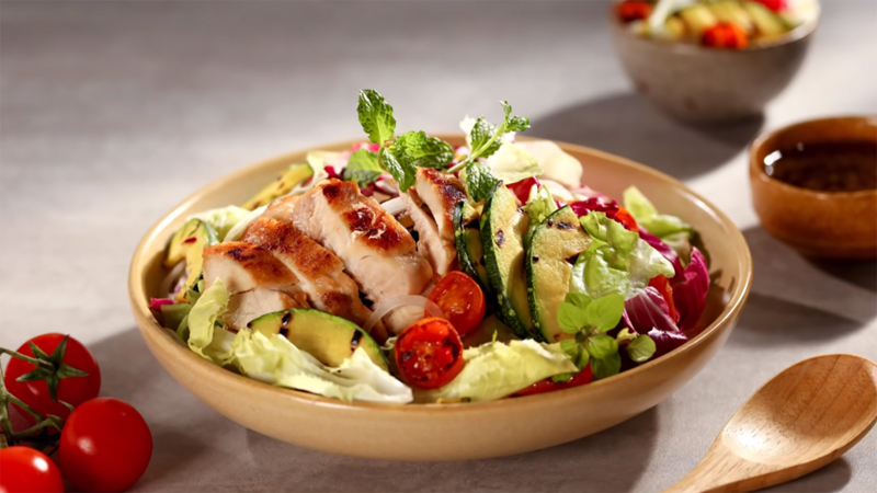 - Cho thịt gà vào áp nướng chảo đến khi vừa chín tới