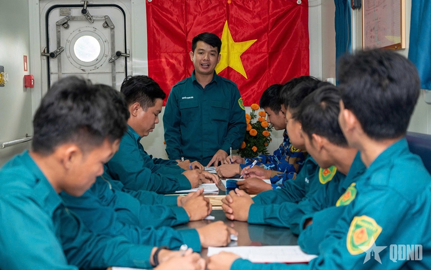 Ca trực được tổ chức chặt chẽ, khoa học. Mỗi kíp gồm 3 người, luân phiên trực 2 giờ, bảo đảm quân số luôn tỉnh táo, sẵn sàng xử trí các tình huống. Trong buồng lái, thuyền trưởng Nguyễn Thanh Đấu chăm chú nhìn về phía trước. Anh đã quen với những cái Tết lênh đênh thế này. Với anh, Giao thừa không phải là khoảnh khắc nghỉ ngơi, mà là thời điểm phải tỉnh táo hơn bao giờ hết. Một cái liếc nhanh bảng điều khiển, một lời nhắc ngắn gọn với kíp trực tất cả diễn ra tự nhiên như hơi thở. Con tàu an toàn, anh em yên tâm, thế là xuân đã trọn.