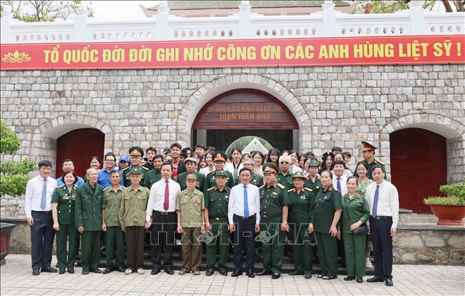 *Tiếp theo, tại Nghĩa trang Liệt sĩ Quốc gia A1, nơi yên nghỉ vĩnh hằng của các anh hùng, liệt sĩ: Tô Vĩnh Diện, Phan Đình Giót, Bế Văn Đàn, Trần Can cùng 641 đồng đội, những người đã anh dũng hy sinh trong Chiến dịch Điện Biên Phủ, Thường trực Ban Bí thư Trần Cẩm Tú và các thành viên trong Đoàn đã trân trọng dâng lên vòng hoa tươi thắm, thắp hương tri ân, bày tỏ lòng thành kính, biết ơn vô hạn các anh hùng, liệt sĩ.