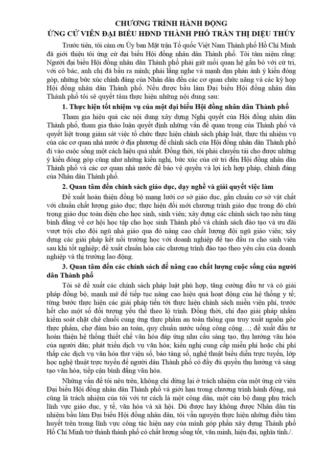 Tóm tắt tiểu sử bà Trần Thị Diệu Thuý ứng cử Hội đồng nhân dân TP. Hồ Chí Minh Khóa XI