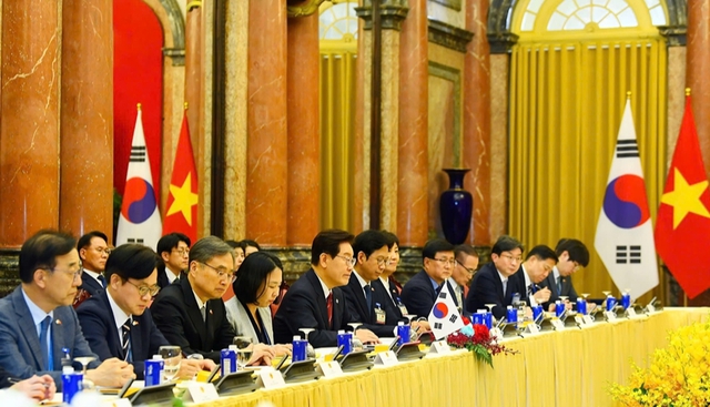 Tổng Bí thư, Chủ tịch nước Tô Lâm đánh giá cao sự tham gia đầu tư và đóng góp của các doanh nghiệp Hàn Quốc đối với quá trình phát triển kinh tế, xã hội Việt Nam; hoan nghênh doanh nghiệp Hàn Quốc mở rộng quy mô đầu tư vào các lĩnh vực ưu tiên như phát triển cơ sở hạ tầng, đô thị thông minh, chất bán dẫn, Trung tâm dữ liệu AI quy mô lớn, hợp tác cảng biển thông minh và xây dựng cảng biển thế hệ mới.