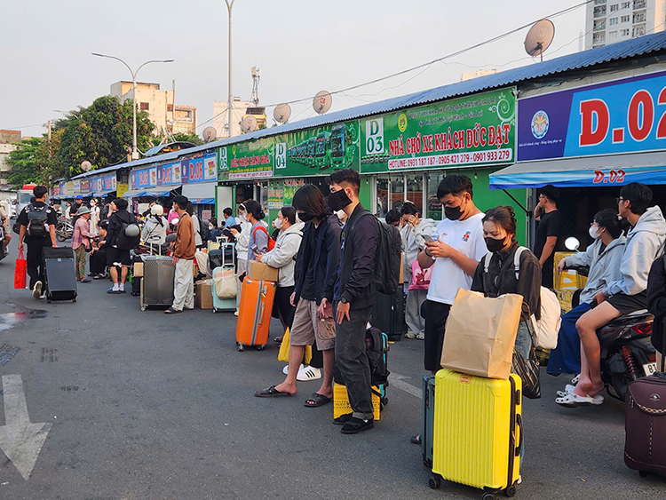 Ghi nhận của phóng viên vào chiều cùng ngày tại Bến xe Miền Đông, Bến xe Miền Đông mới, Ga Sài Gòn và Sân bay Tân Sơn Nhất, hành khách lỉnh kỉnh hành lý chờ làm thủ tục. Khu vực sảnh chờ, bãi đón - trả khách và quầy check-in luôn nhộn nhịp, tạo nên không khí đặc trưng những ngày giáp Tết.