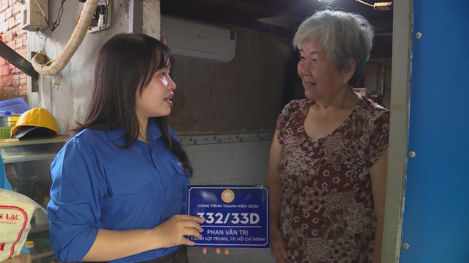 Đoàn phường trao bảng địa chỉ mới, hỗ trợ người dân thuận tiện tìm kiếm địa chỉ