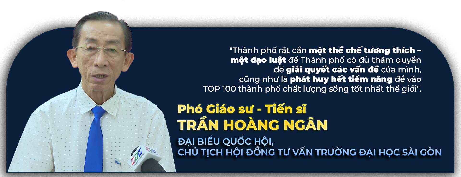 Với vị trí địa chính trị, địa kinh tế rất quan trọng, là cửa ngõ giao lưu và hội nhập quốc tế. Trong nhiệm kỳ này, triển khai Nghị quyết Đại hội Đảng toàn quốc và Nghị quyết Đại hội Đảng bộ TP. Hồ Chí Minh, Thành phố sẽ là địa phương tiên phong đi đầu, tiếp tục là đầu tàu kinh tế của cả nước. Mục tiêu là phải sánh vai với các đô thị lớn trên thế giới. Chính vì lẽ đó, theo các chuyên gia, Thành phố rất cần một thể chế tương thích - một bộ luật để Thành phố có đủ thẩm quyền, giải quyết các vấn đề cốt lõi.