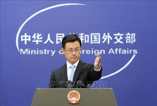 Người phát ngôn Bộ Ngoại giao Guo Jiakun phát biểu họp báo tại thủ đô Bắc Kinh. Ảnh: Kyodo/TTXVN