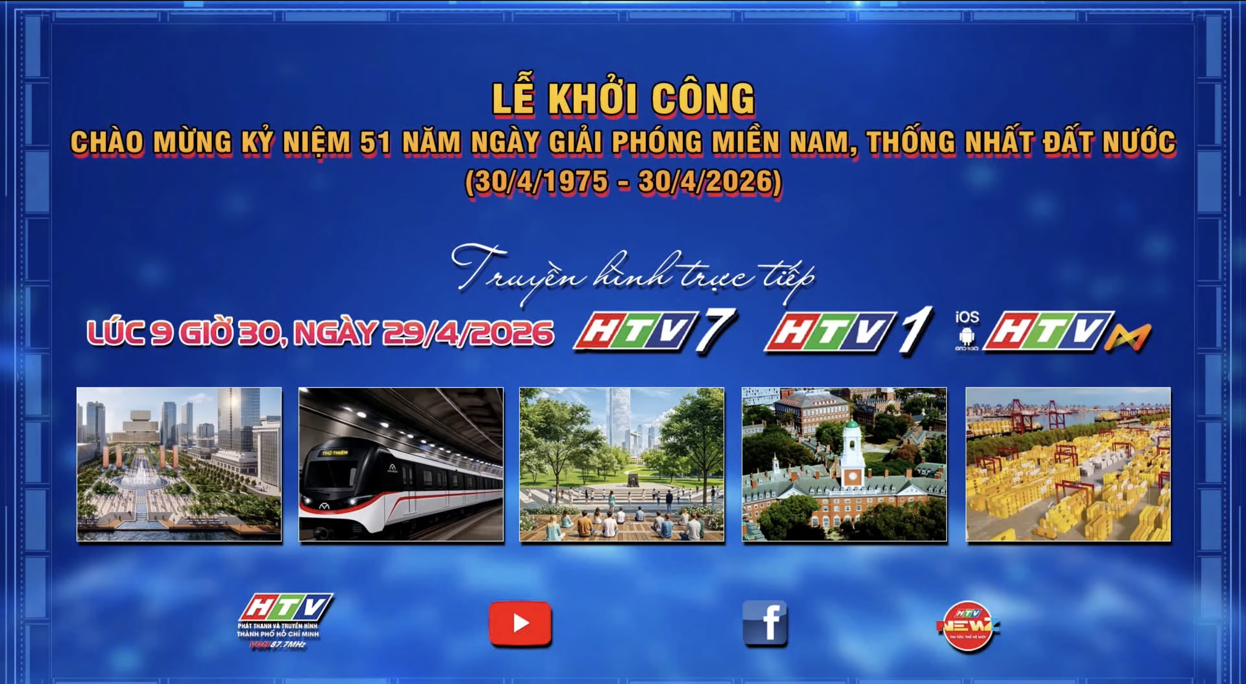 Nhân dịp kỷ niệm 51 năm Ngày Giải phóng miền Nam, thống nhất đất nước (30/4/1975 – 30/4/2026), Đài Phát thanh và Truyền hình TP. Hồ Chí Minh (HTV) đã truyền hình trực tiếp Lễ khởi công đồng loạt nhiều dự án trọng điểm của Thành phố.