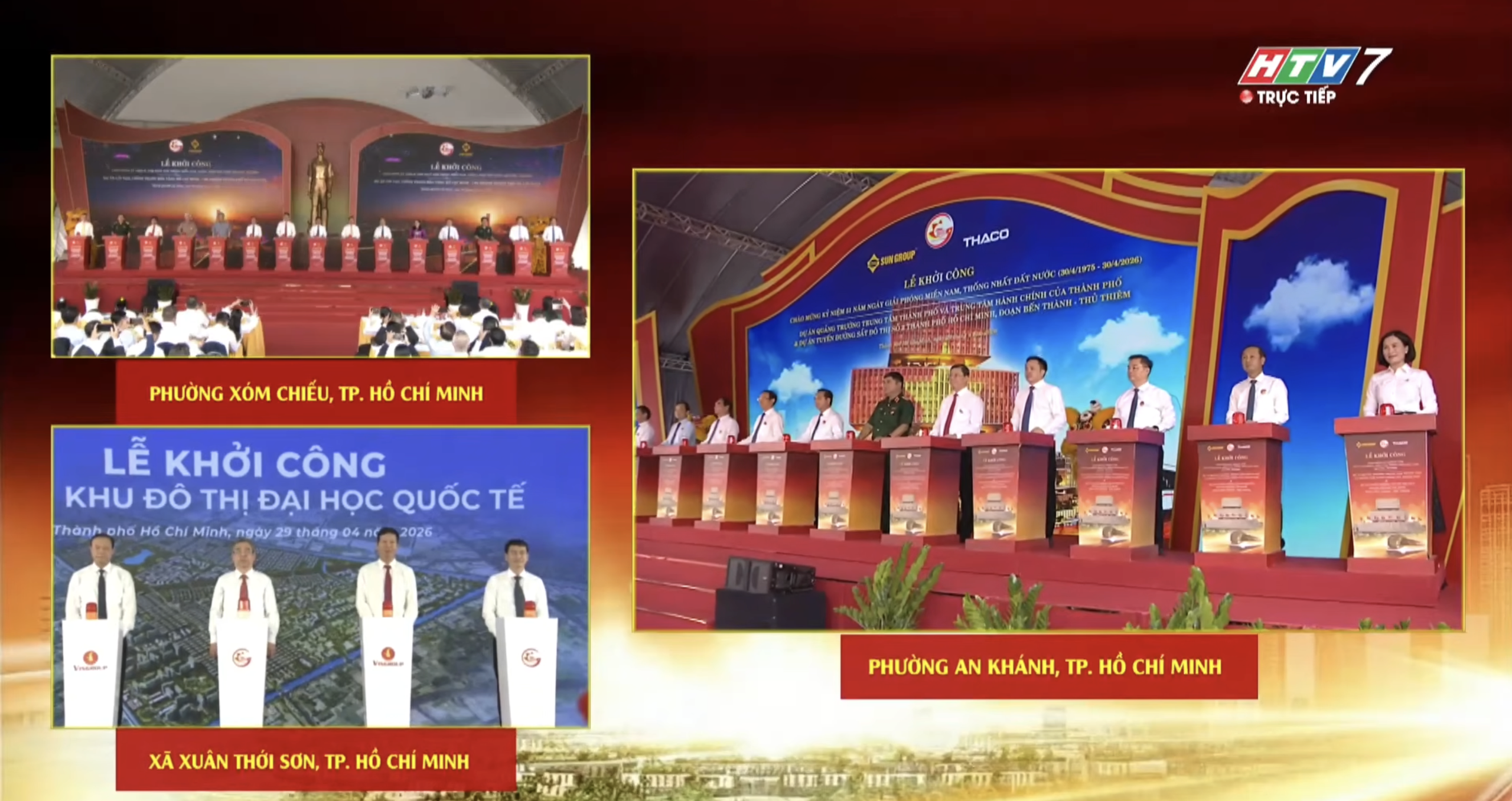 (HTV) - Nhân kỷ niệm 51 năm Ngày Giải phóng miền Nam, thống nhất đất nước, TP. Hồ Chí Minh đồng loạt khởi công nhiều dự án trọng điểm và được HTV truyền hình trực tiếp từ 3 điểm cầu, đánh dấu bước khởi đầu cho giai đoạn phát triển hạ tầng – đô thị quy mô lớn, hiện đại và bền vững.