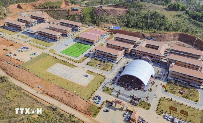 Toàn cảnh Trường Phổ thông nội trú liên cấp Tiểu học và Trung học cơ sở Si Pa Phìn (Điện Biên) nhìn từ trên cao (Ảnh: Xuân Tư/TTXVN)