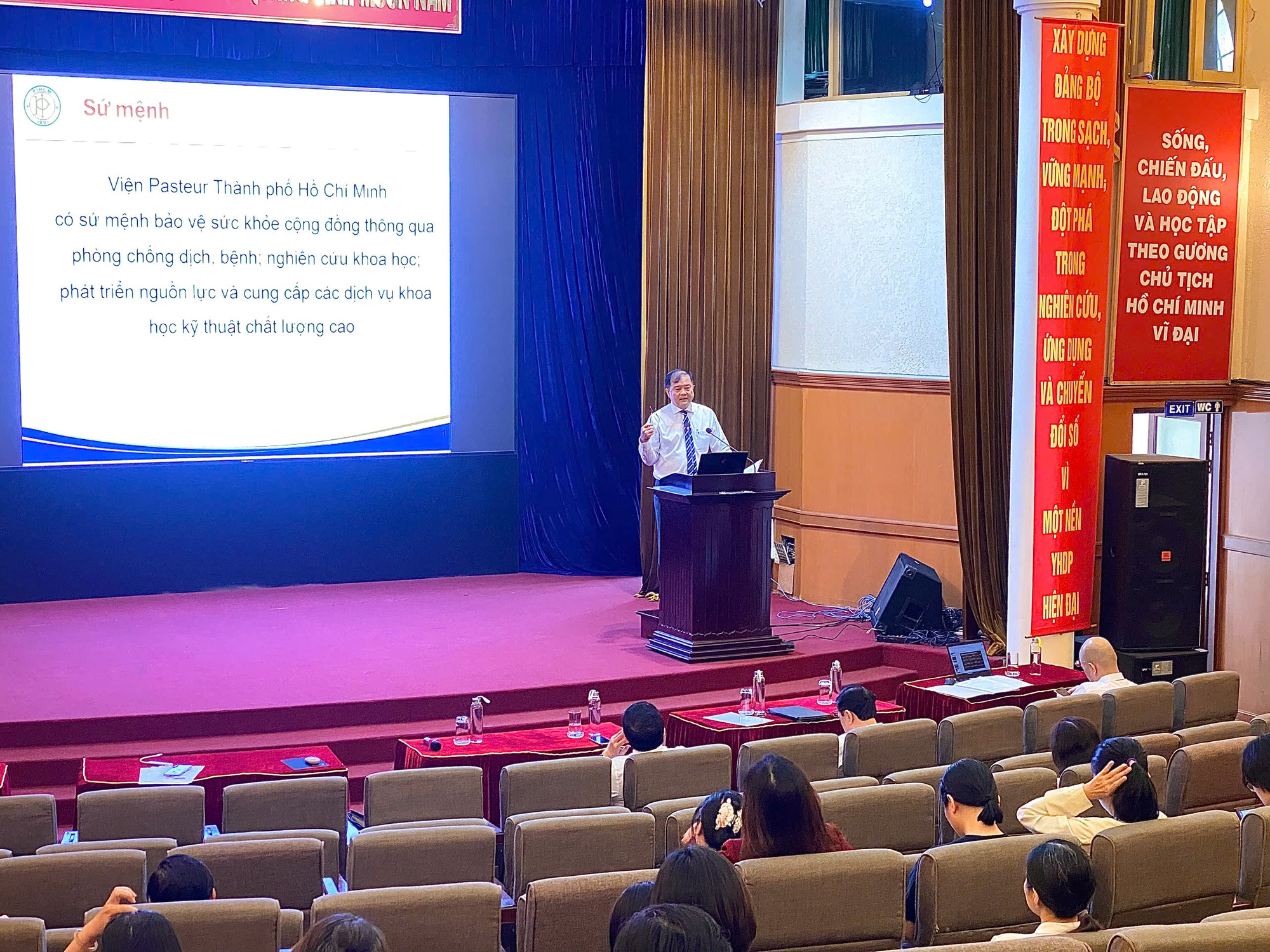 ThS. Nguyễn Ngọc Anh Tuấn – Chủ tịch Công đoàn Viện Pasteur TP. Hồ Chí Minh đã có bài phát biểu, trình bày về sứ mệnh, tầm nhìn và giá trị cốt lõi của Viện