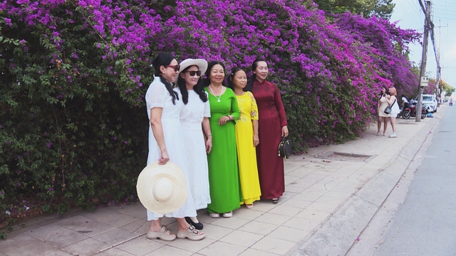 Người dân và du khách thích thú check-in tại tuyến đường hoa giấy rực rỡ sắc màu