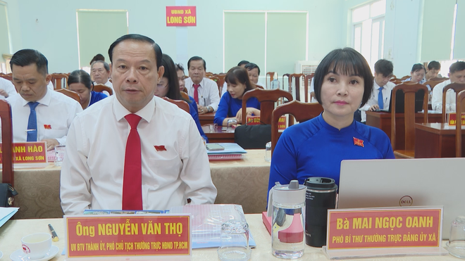 Theo đó, Ủy ban bầu cử xã Long Sơn đã báo cáo kết quả bầu cử đại biểu HĐND. Toàn xã có hơn 14 nghìn cử tri tham gia bỏ phiếu, đạt tỷ lệ 100%, bầu đủ 18 đại biểu vào cơ quan quyền lực nhà nước ở địa phương. Với tinh thần dân chủ, khách quan và đúng quy định của pháp luật, kỳ họp đã thống nhất bầu các chức danh chủ chốt của HĐND xã và UBND xã với số phiếu tín nhiệm cao.