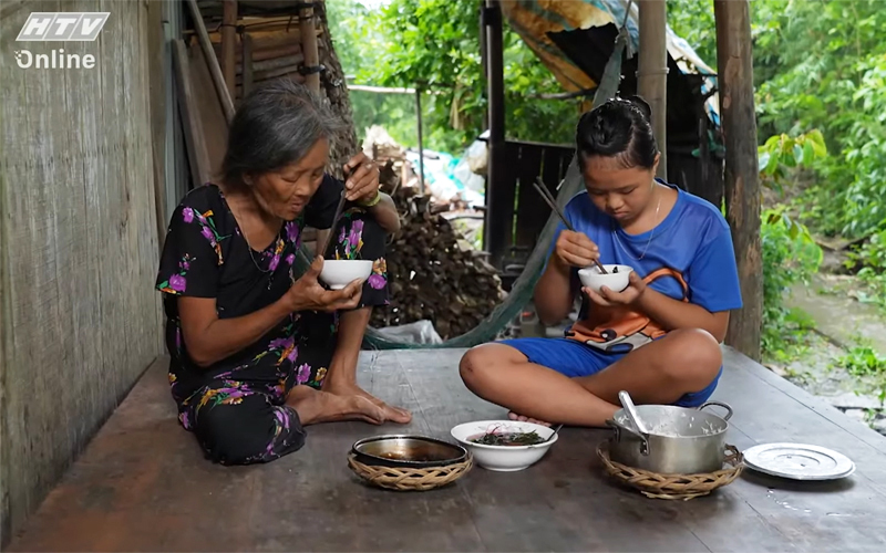 Cuộc sống khó khăn và bản thân đã lớn tuổi, bà ngoại phải xin rau muống của hàng xóm để đem về bán. Những lúc bà nằm viện, hai bà cháu lại nương nhờ những bữa cơm từ thiện để qua ngày. Bà ngoại nói trong nước mắt: “Sợ nhiều khi mình mất thì cháu để ai nuôi. Tuổi thân lắm, nó đi đám bận đồ bộ thì bị người ta chê. Họ gọi còn là đồ không cha không mẹ. Cháu nó buồn lắm!”. Dù mất mát tình thương gia đình và hoàn cảnh túng thiếu đủ điều, nhưng cô bé không ngừng nỗ lực học tập, chăm chỉ đỡ đần bà trong mọi việc.