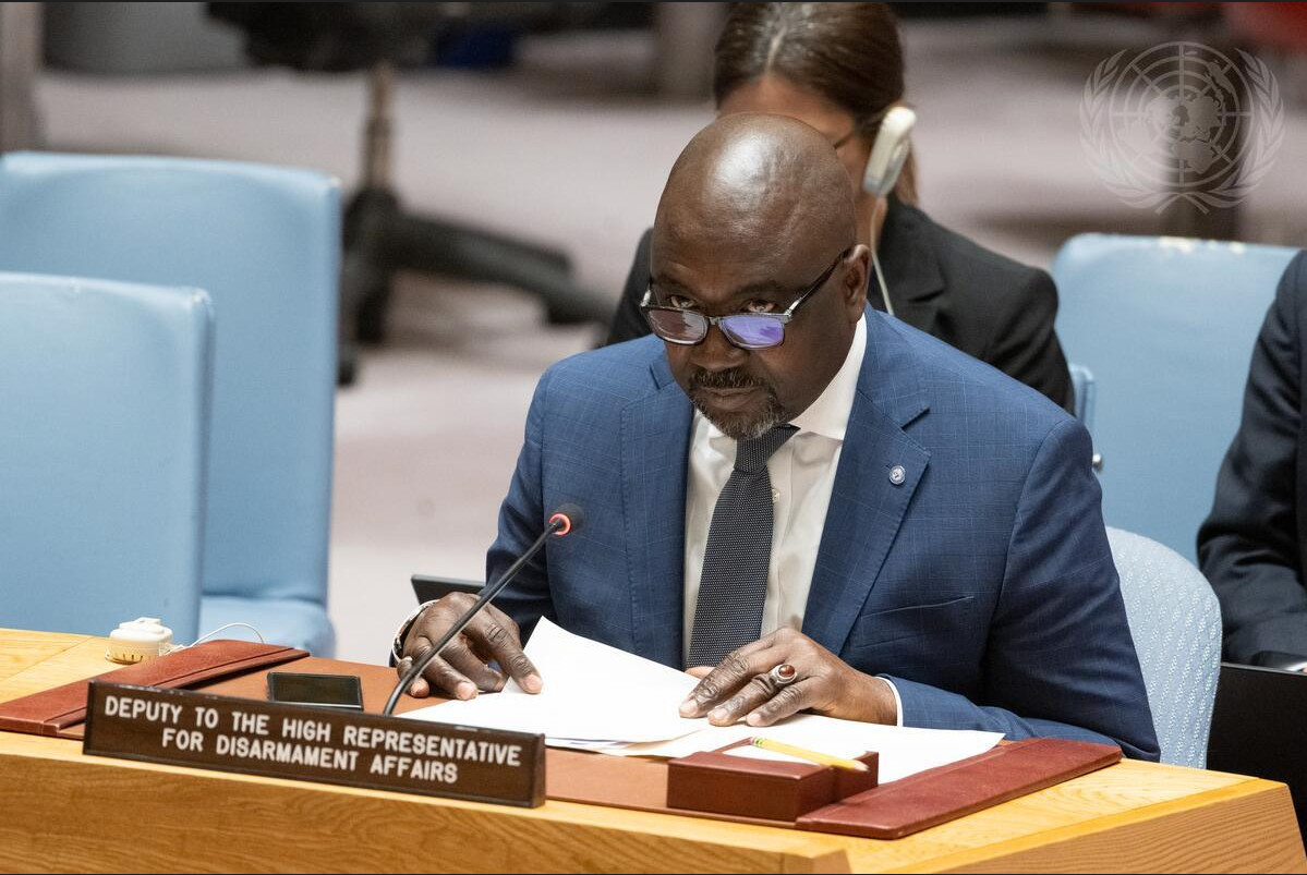 Ông Adedeji Ebo - Phó Đại diện cấp cao của Văn phòng Liên hiệp quốc về giải trừ quân bị, báo cáo tại cuộc họp của Hội đồng Bảo an về các mối đe dọa đối với hòa bình và an ninh quốc tế ngày 25/7 - Nguồn ảnh: america-times