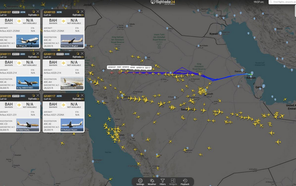 Gulf Air, hãng hàng không quốc gia của Bahrain, xác nhận rằng tất cả các chuyến bay đến, đi và bay qua đã bị đình chỉ vô thời hạn.